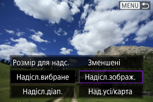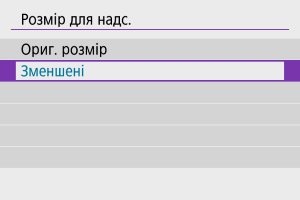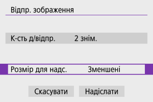 - Параметр [Зменшені] доступний лише для фотографій, знятих за допомогою камер такої самої моделі. Фотографії, зняті камерами інших моделей, надсилаються без зміни розміру.