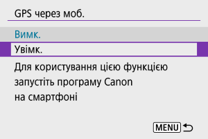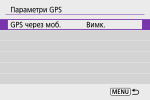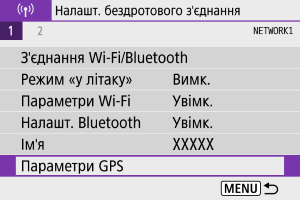 Інформацію про розташування, яка додається до знімків, можна перевірити на екрані параметрів зйомки ().