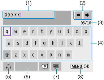 - (2) Кнопки керування курсором для переміщення курсора в полі введення