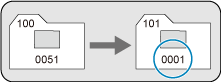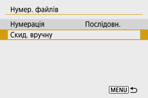 Коли виконується ручне скидання нумерації, автоматично створюється папка, у якій нумерація збережених зображень починається з 0001.