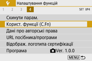 : Скинути парам.] і виберіть [Корист. функції (C.Fn)] у розділі [Інші параметри].