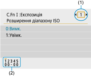 виберіть номер користувацької функції, яку потрібно налаштувати (1), а потім натисніть кнопку