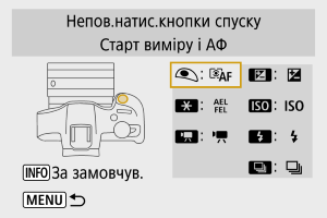 Затінення вказує на те, що користувацьку функцію не можна застосовувати в цьому режимі фото- або відеозйомки. (Параметри не діють.)