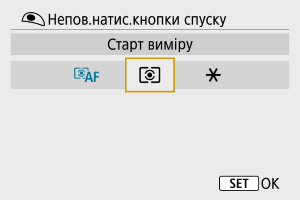 | Старт виміру і АФ | ● | ○ | |||||||||||