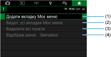 Видал. усі вкладки Моє меню