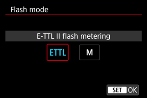 • [Manual flash] is for setting the Speedlite's [Flash output level] yourself.