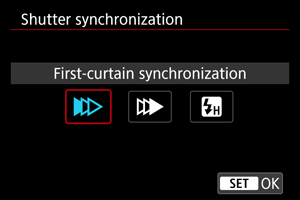 Normally, set this to [First-curtain synchronization] so that the flash fires immediately after the shooting starts.