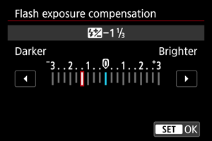 • If flash exposure compensation is set with the Speedlite, you cannot set the flash exposure compensation with the camera. If it is set with both the camera and Speedlite, the Speedlite's setting overrides the camera's.