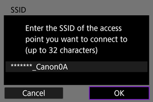 - In other device's Wi-Fi settings, select the SSID (network name) shown on the camera screen, then enter the password.