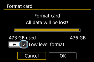 - During low-level formatting, you can cancel formatting by selecting [Cancel]. Even in this case, normal formatting will already be complete and you can use the card as usual.