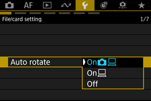 • Images captured with auto rotation set to [Off] will not rotate during playback even if you later set auto rotation to [On].