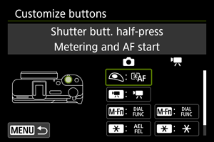 You can assign frequently used functions to camera buttons that are easy for you to use. Different functions, for use when shooting still photos or movies, can be assigned to the same button.