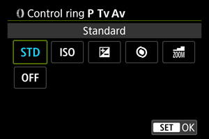 The control ring direction when setting the shutter speed and aperture value can be reversed.