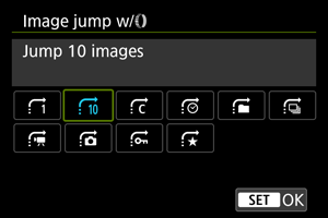 To set how the camera jumps through images, you can turn the dial on the playback screen in single-image display.