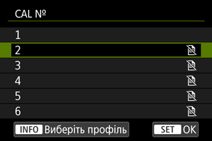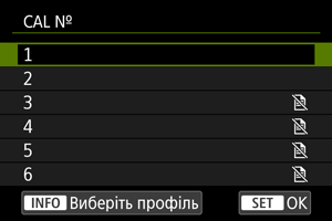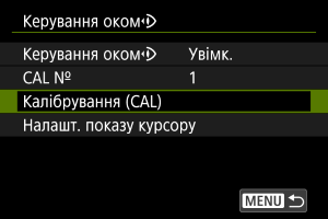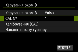 Щоб зареєструвати дані калібрування для інших користувачів або умов використання (наприклад, в окулярах чи контактних лінзах або без них), виберіть доступний номер для призначення даних серед номерів, позначених піктограмою [] на екрані [CAL №], а потім виконайте калібрування.