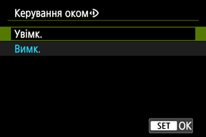 - Виберіть [Очік. зйомки], щоб указівник залишався видимим з моменту, коли ви дивитесь у видошукач, до моменту, коли ви підтвердите фокусування об’єкта за допомогою керування оком.