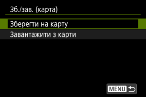 Зареєстровані дані калібрування можна зберегти на картці. Ви також можете завантажити дані калібрування з картки, щоб використовувати їх.