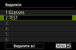 - Щоб видалити всі дані калібрування, виберіть [Видалити всі] і натисніть