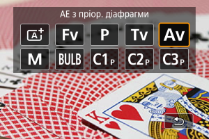 [Av] означає «значення діафрагми» (Aperture value; величина отвору діафрагми).