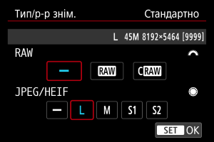 встановлюється, якщо для RAW та JPEG/HEIF вибрано [