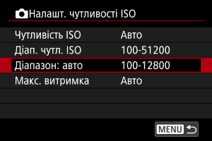 Можна задати діапазон для автоматичного вибору чутливості ISO.