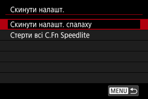 Скидання параметрів функцій спалаху/Скидання всіх користувацьких функцій Speedlite