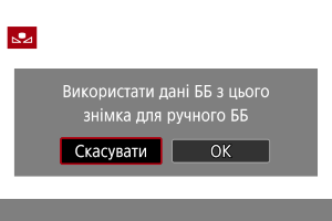 За допомогою функції ручного балансу білого можна встановити баланс білого на основі зображення, знятого за того ж освітлення, що й на місці зйомки.