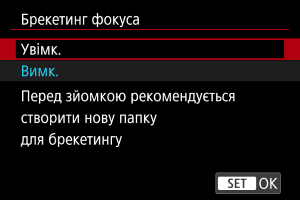 : Брекетинг фокуса] повертається до значення [Вимк.], якщо перемикач живлення встановлено в положення