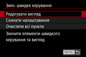Скидання екрана настроюваного швидкого керування або стирання всіх елементів
