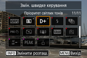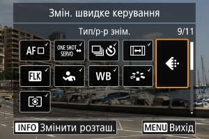 - Елементи, що відображаються на екрані швидкого керування, мають позначку. Елементи без позначки буде видалено.