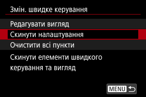 - Виберіть [Скинути налаштування], щоб відновити елементи екрана швидкого керування та їх компонування за замовчуванням.
