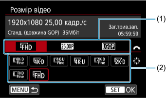 Зауважте, що кадрова частота автоматично оновлюється відповідно до налаштування параметра [: Частота системи] ().