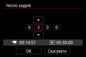 Докладніше про доступну тривалість покадрового записування відео (до розряджання акумулятора) див. в розділі Записування відео.