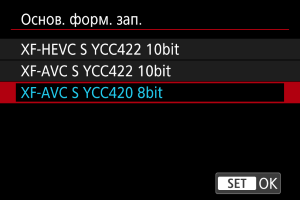 Коли для параметра [Основ. форм. зап.] установлено значення [XF-HEVC S YCC422 10bit]