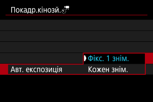 - Щоб скасувати покадрове записування відео, установіть для параметра [Покадр.] значення [Вимк.].