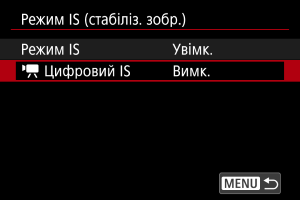 Цифровий IS] значення [Увімк.] або [Покращений] також передбачає встановлення для параметра [Режим IS] значення [Увімк.].