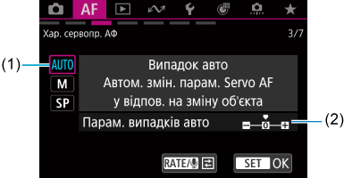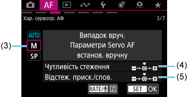 - Якщо використовується об’єктив без перемикача режимів фокусування, на вкладці [