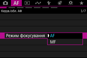 Можна задати параметри режиму роботи АФ, які відповідають умовам і об’єкту зйомки.