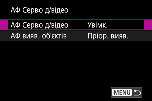 Ви можете зазначити, чи використовувати слідкуюче автофокусування для відеозйомки, якщо не виявлено об’єкт, заданий у меню [: Об’єкт для виявл.] ().