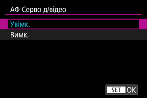 Виберіть [АФ Серво д/відео].