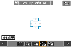 Положення часто використовуваної точки АФ можна зареєструвати. Для перемикання з поточної точки АФ на зареєстровану можна скористатися кнопкою, призначеною для виклику початкового положення, розташованою на екранах додаткових параметрів [Прямий вибір точки АФ], [Старт виміру і АФ], [Перехід на реєстр. точку АФ] або [Зареєстр./викл. функції зйомки] в меню [: Корист. налашт. кнопок зйомки] ().