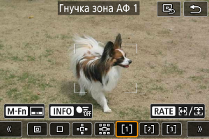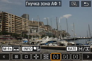 Можна вручну встановити точку АФ або рамку зони АФ. У цьому прикладі показано екрани гнучкого зонального АФ 1.