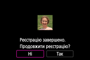 Після того як з’явиться показаний нижче екран, можна буде зареєструвати обличчя іншої людини.