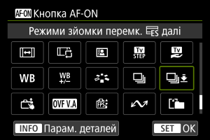 - Виберіть режим безперервної зйомки, який потрібно призначити кнопці, а потім натисніть кнопку
