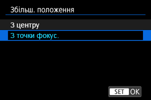 Положення, встановлене в [Збільш. положення], використовується під час відображення наступних зображень у збільшеному вигляді.