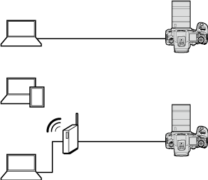 - Щоб використовувати дротову локальну мережу з камерою, потрібні ручка-тримач акумуляторів BG-R20EP або охолоджувальний вентилятор CF-R20EP (продаються окремо).