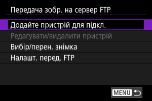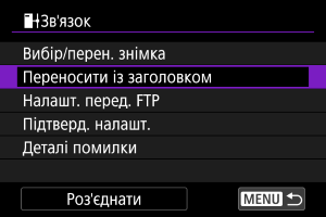 За допомогою функції передавання по FTP можна автоматично передавати кожне зображення на FTP-сервер у процесі зйомки або передати комплект знімків.