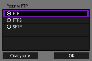 - Для безпечного передавання по FTP через з’єднання SSH виберіть пункт [SFTP].