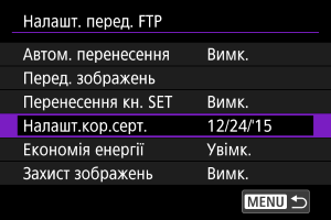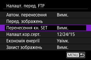 Щоб автоматично захищати зображення, що передаються через FTP, установіть значення [Увімк.] ().