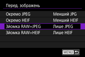 - На екрані [Переносити із заголовком] не можна вибрати інші зображення. Щоб вибрати інше зображення для передавання із заголовком, перегляньте це зображення, а потім дотримуйтеся цих інструкцій.